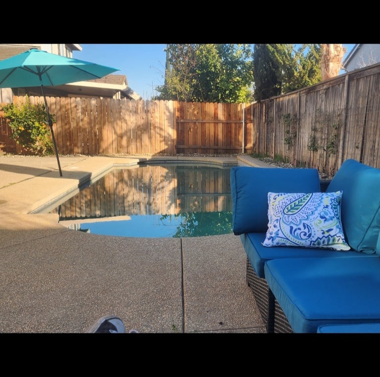 A sparkling backyard pool ready for summer fun.